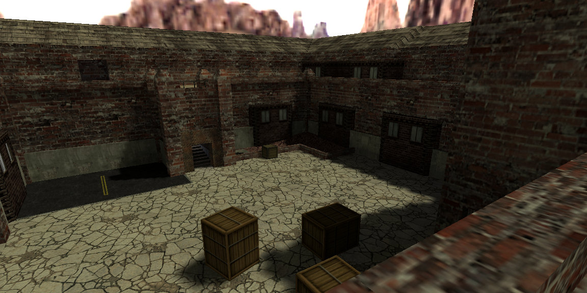 Half an hour later and I had a slither of a map. A tall 2-floor wall made of brick, and a couple windows at the bottom. A quick duplicate later and I had the same wall twice as long. A few more duplicates and I had a courtyard shape. A few weeks later and I had what could only be called ‘cs_retire’, although it couldn’t be called that due to 8.3 filename limitations and became ‘cs_tire’ instead. A nice, fresh, battered War-Torn Retirement Home.