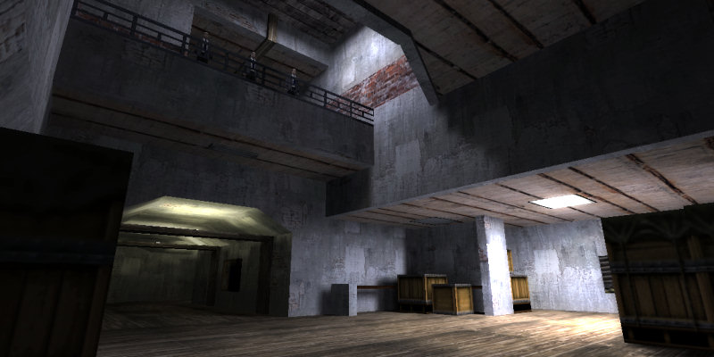 Still, there are some aspects of Tire that I think worked well. The balcony (above) was one - nothing spectacular (in fact it was closed off in the last release) but balconies like that appeal to me for some reason. The sense of scale was another. The underground sewers I was very proud of (they weren’t just square, wet, boxy concrete corridors like in every other map at the time.) Looking back at it today, I can see how the fundamentals were slowly being learnt.