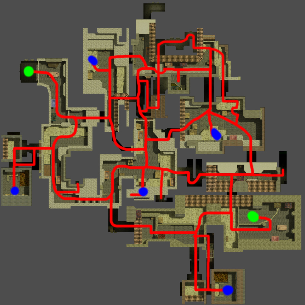 So, Casbah was proceeding nicely (actually, “mideast” was, because it wouldn’t be named Casbah until much later.) My blue-team spawn area had branched out into a couple of small paths, one leading to some courtyard area, and the other leading to… some other courtyard area. Terrific stuff. All I needed now was a few more courtyards, the spawn area for the red-team, and my masterpiece would be complete.