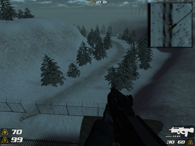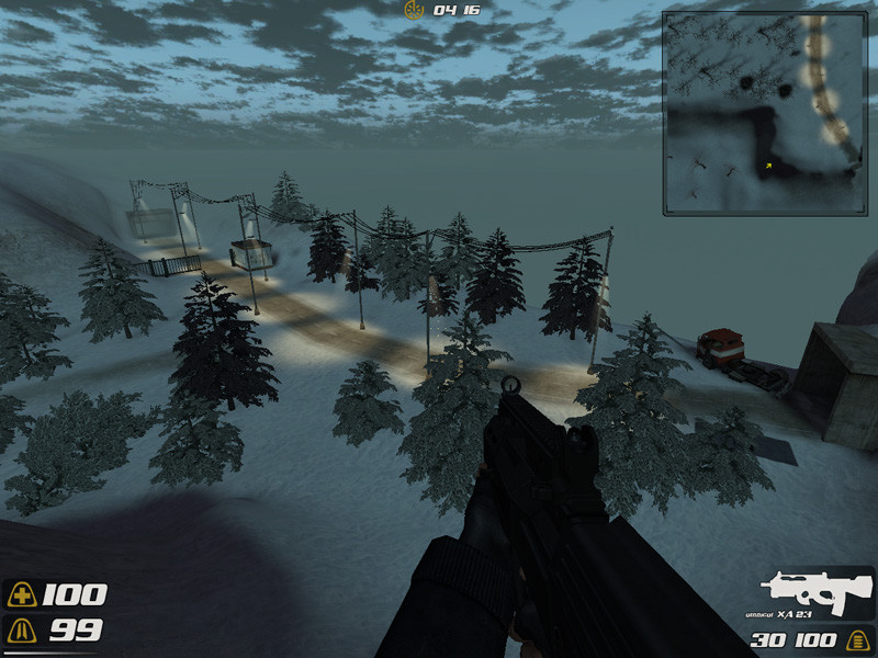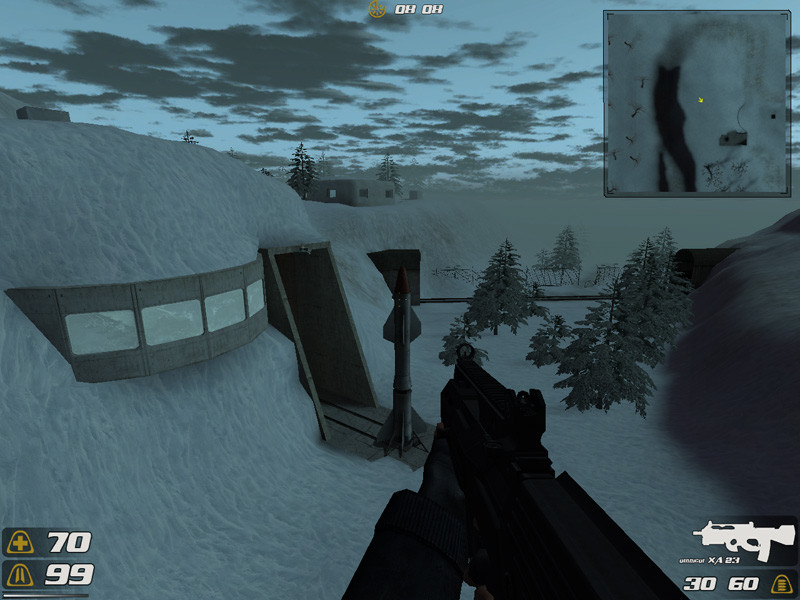 This bit hasn’t changed much at all. The trees have changed, and there’s a big missile sitting there now, but it still has the original problems such as the remarkably weak-looking concrete entrance and the windowed outpost thing. The grain of the snow on the cliff-sides is still going the wrong way (it should really settle horizontal), and it just needs to look more natural. The snow doesn’t look like snow because it’s settled everywhere and on weird angles too.